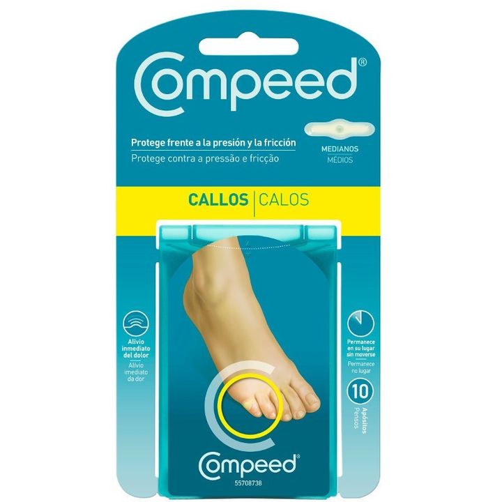 Se trata de un apósito para callos medianos con una avanzada tecnología hidrocoloide diseñada para aliviar el dolor al instante y evitar la fricción, a la vez que hidrata y suaviza el callo favoreciendo su eliminación. Compeed callos medianos actúa como una segunda piel que protege y proporciona un efecto almohadilla frente a la presión.