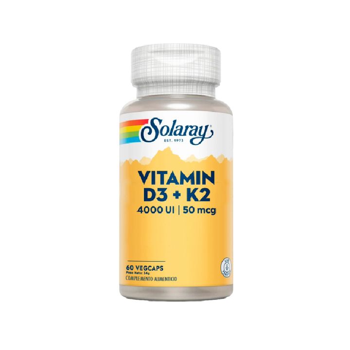 Solaray Vitamin D3 + K2 es un complemento alimenticio que combina dos nutrientes clave para la salud ósea. Da el poder de la vitamina del sol, sin colorantes, sabores ni conservantes artificiales.